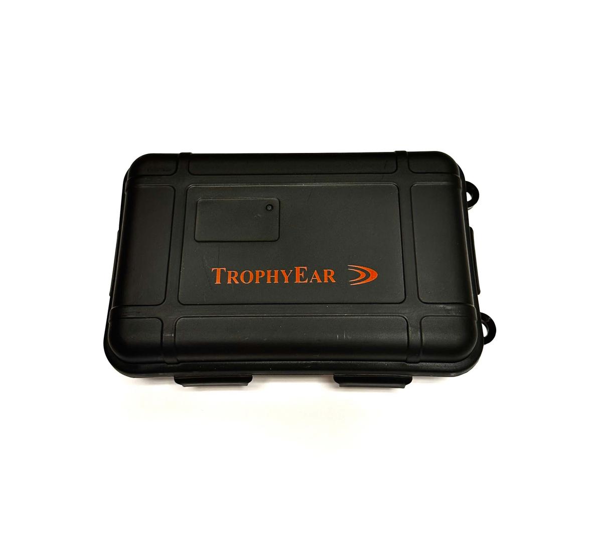 Black hard case for storing your small zipper case, batteries, and wax guards.