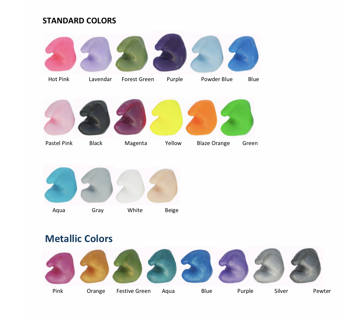Our custom solid ear plugs are made from a state-of-the-art, and very soft but rigid material that gives them maximum comfort, style, and protection. Our custom solid plugs have an industry leading 29db NRR!